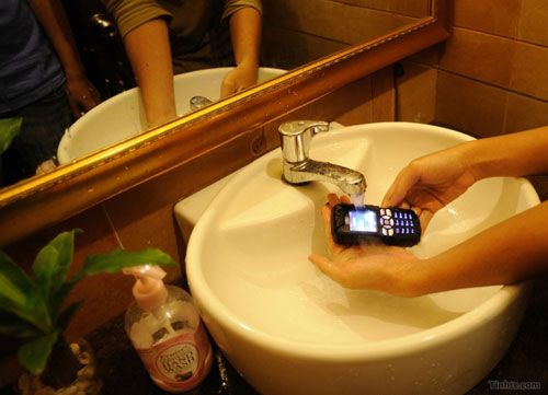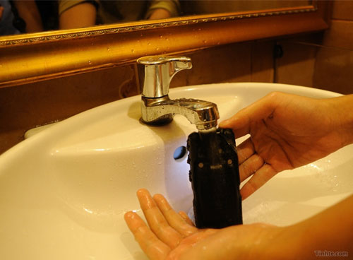 | Điện thoại đến, bắt máy, ngâm nước tiếp vẫn không hề gì. | |