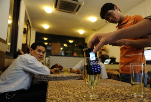 | Thử nghiệm cho máy "uống" nước trà. | |