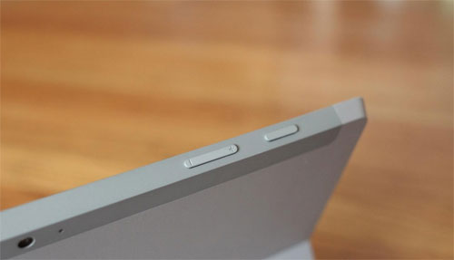 Cạnh dưới không đặt một phím chức năng nào do đây là nơi đặt khớp nối nam châm để kết nối Surface 3 với bàn phím rời.