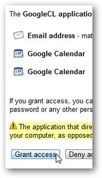 Nhấn nút Grant access và Enter trong cửa sổ GoogleCL: