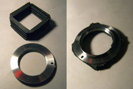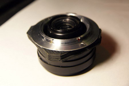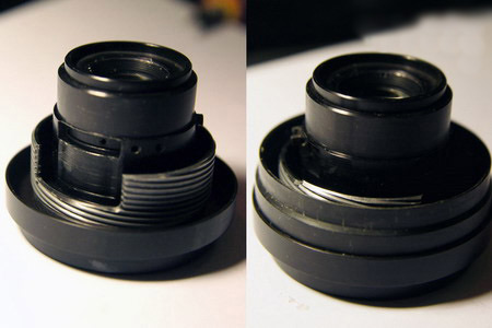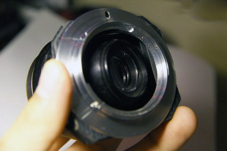 Lắp thêm một vòng sắt (lấy từ một ống kính Helios) cũ vào phần còn lại của ống kính Carl Zeiss.