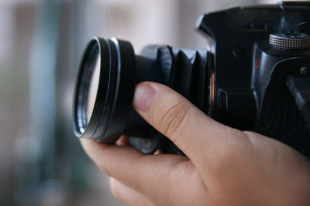 Người chụp lấy nét bằng cách đẩy ống kính ra vào và xoay nghiêng theo các hướng để tạo hiệu ứng.