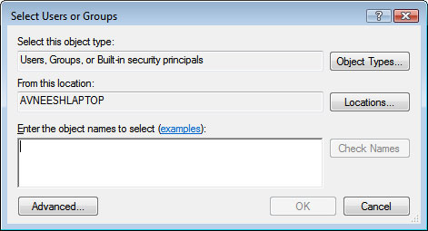 Bây giờ bạn điền vào username của một account mà bạn muốn giới hạn quyền truy cập trong ô textbox (sử dụng nút “Check Names” để kiểm tra xem username đó có tồn tại không).