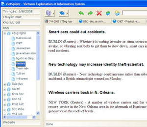 Thực ra, các hệ thống spider – nôm na giống như một robot tự động chuyên lấy thông tin từ một website, trang báo trực tuyến… do người dùng chọn trước không phải là mới (spider tiếng Anh nghĩa là con nhện). Trước đây, nhiều người hẳn đã từng biết đến phần mềm ICPS, hệ thống thu thập và bóc tách tin tức của Nguyễn Phú Bình và Nguyễn Thành Long. Đây là sản phẩm đoạt giải nhì cuộc thi Trí tuệ Việt nam năm 2002. Sau đó là ICAClient – chương trình đoạt giải ấn tượng trong TTVN 2004. Ngoài ra còn có NewSpider - phần quan trọng trong iCMS của VinaComm…