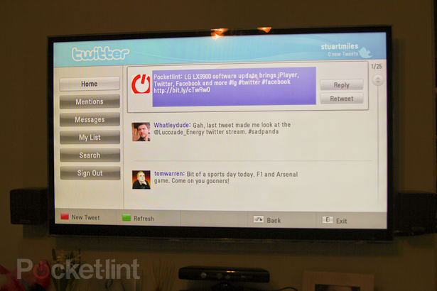 Các ứng dụng Facebook và Twitter sẽ được bổ sung thêm vào hệ thống NetCast có trên LX9500. (Ảnh: Pocket-lint).