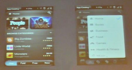 Không nói nhiều về phần này, Palm chỉ giới thiệu 1 bức ảnh chụp màn hình giao diện mới của App Catalog. Chúng ta có thể thấy giao diện này cho phép chúng ta duyệt qua các ứng dụng dễ dàng và thuận tiện hơn. Hy vọng tính năng tìm kiếm cũng sẽ được nâng cấp vào đổi mới.