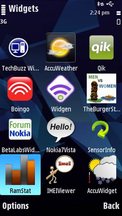 | Hình ảnh widget RAMSTAT khi hoạt động bên ngoài màn hình chủ N97. | |