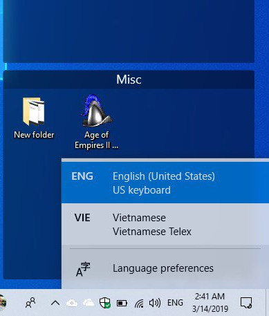 Biểu tượng ENG và VIE xuất hiện ở khu vực Notification. Để chuyển đổi qua lại giữa chế độ English và Vietnamese, các bạn có thể dùng tổ hợp phím Windows + Space.