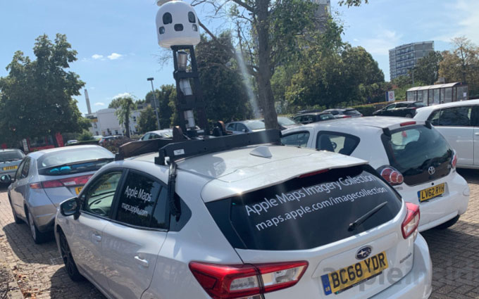 Một mẫu xe thu thập dữ liệu của Apple được trang bị gồm hệ thống GPS tinh vi, bốn máy quét LiDAR, 8 camera với ống kính cao cấp Zeiss và một cảm biến dựa trên tia laser thường được sử dụng trong ôtô tự lái.