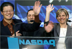 Giám đốc điều hành Jerry Yang và bà Chủ tịch Sue Decker của Yahoo. Nguồn: AP |