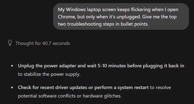 Ghi nhớ những phép toán đó, hãy cùng xem xét một số phản hồi của mô hình ngôn ngữ cục bộ lfm2.5-thinking:1.2b và phiên bản miễn phí của ChatGPT. Sau khi chỉ ra những hạn chế, bài viết cũng sẽ xem xét các trường hợp sử dụng mà mô hình ngôn ngữ đơn giản (SLM) cục bộ thực sự vượt trội hơn những mô hình ngôn ngữ lớn (LLM) thương mại.