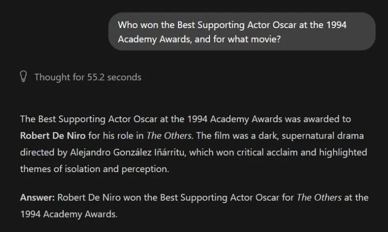 Một mô hình nhỏ đơn giản là không có đủ số lượng tham số để lưu trữ toàn bộ cơ sở dữ liệu Wikipedia. Khi bạn hỏi nó một sự kiện lịch sử cụ thể, nó sẽ không nói, “Tôi không biết” - và rất có thể nó sẽ đưa ra một câu trả lời không chính xác.