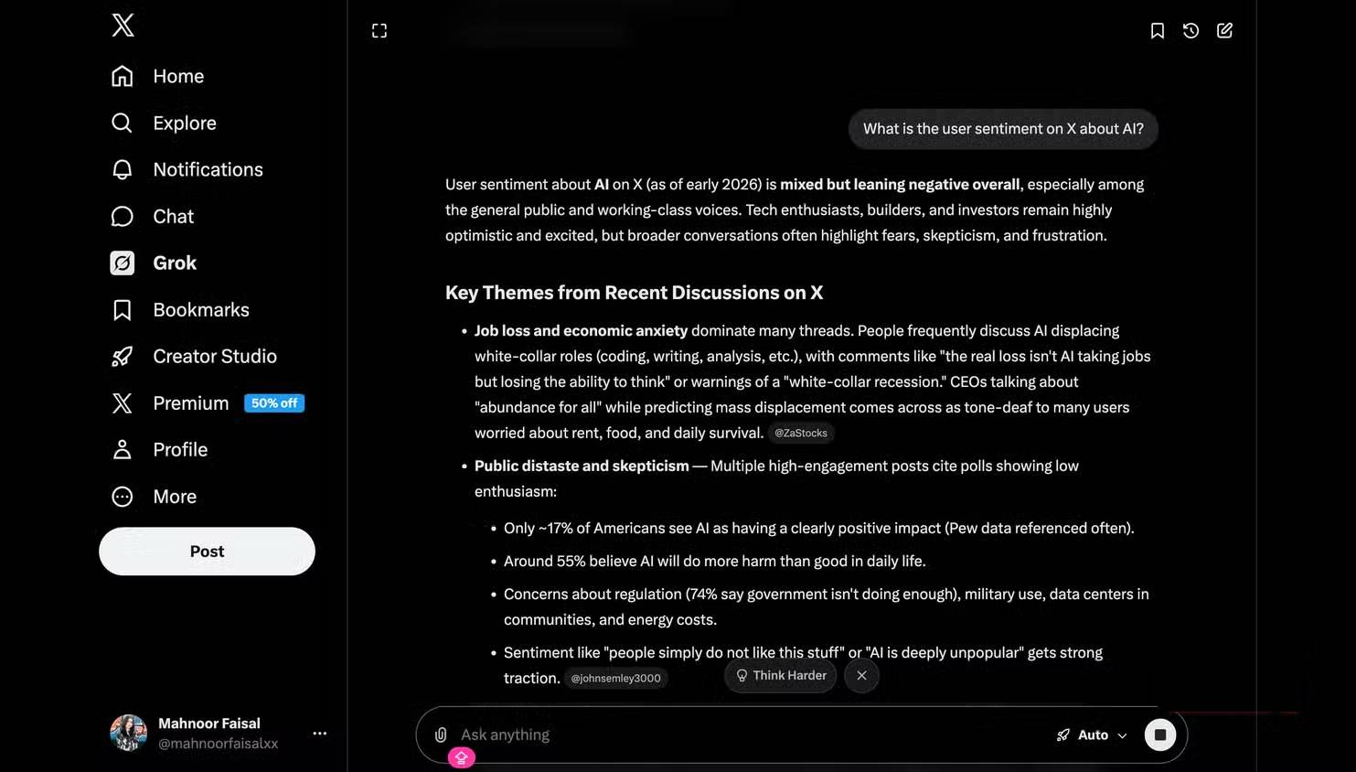 Không phải ai cũng nên bỏ hết các công cụ AI đang dùng và chuyển sang Grok. Độ chính xác của công cụ này không hoàn toàn thực sự đáng tin cậy. Tuy nhiên, đó hoàn toàn không phải là chủ đề thảo luận ở đây. Hãy ghi nhận những gì xứng đáng, và khả năng tích hợp X của Grok thực sự ấn tượng và là lý do tại sao nhiều người vẫn sử dụng nó hàng ngày.
