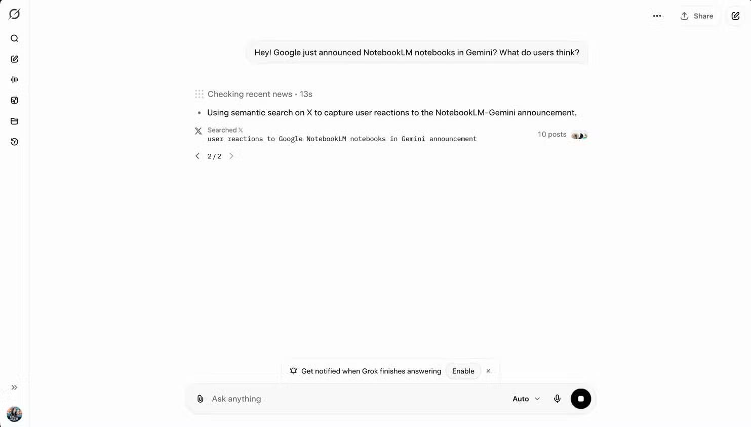 Mặc dù vậy, cũng như mọi tính năng AI khác, tốt nhất là nên xem xét kết quả một cách thận trọng. Các bản tóm tắt mà Grok cung cấp chỉ chính xác dựa trên chất lượng những bài đăng mà nó lấy nguồn từ đó, và X không nổi tiếng về độ chính xác. Luôn luôn xác minh trước khi bạn tin tưởng bất cứ điều gì.