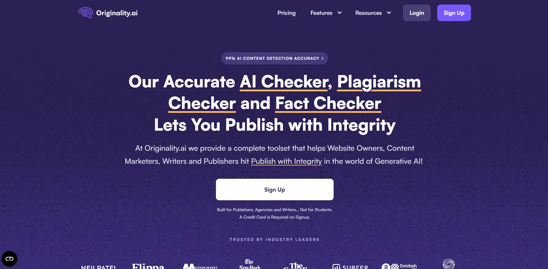 Công cụ kiểm tra nội dung AI của Originality.ai chỉ dành cho biên tập viên và nhà xuất bản, không dành cho sinh viên. Originality.ai khẳng định rằng tính đặc thù này cho phép họ đào tạo các mô hình phát hiện AI trên nội dung dành cho độc giả thông thường, dù là bản in hay trực tuyến.