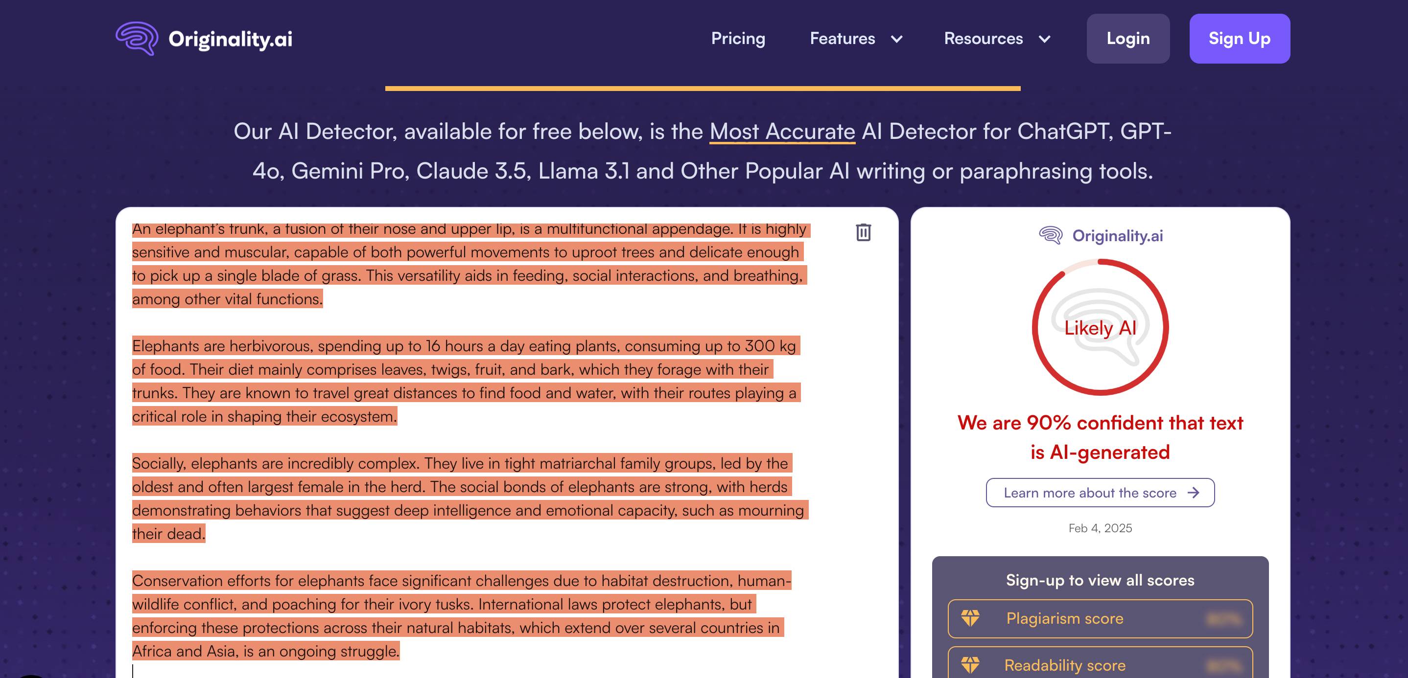 Sau khi thử nghiệm với một số văn bản được chọn lọc, Originality.ai, giống như nhiều công cụ khác hiện có, hoạt động khá tốt trong việc phát hiện văn bản được tạo bởi GPT-3.5 và GPT-4. Ngoài ra, nó có thể phát hiện việc sử dụng người diễn giải lại văn bản đến 60% thời gian và có điểm số chính xác tổng thể cao là 76%.