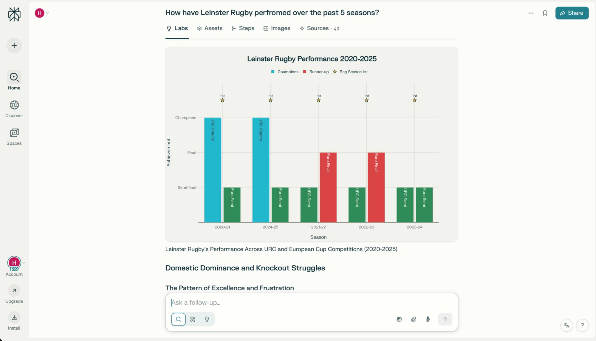 - Tìm kiếm chuyên nghiệp (Pro) cố gắng hiểu các chi tiết cụ thể của câu hỏi và điều chỉnh câu trả lời cho phù hợp với nhu cầu của bạn. Bạn nhận được một số lượng tìm kiếm chuyên nghiệp có giới hạn trên gói miễn phí, và đó là tùy chọn mặc định trên gói trả phí. Nó thậm chí sẽ hỏi bạn các câu hỏi tiếp theo để tinh chỉnh thêm câu trả lời.