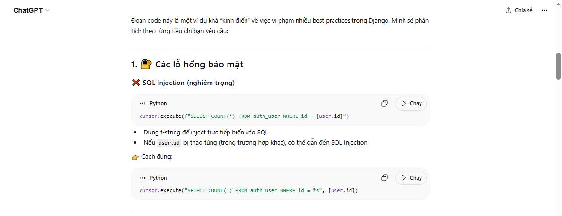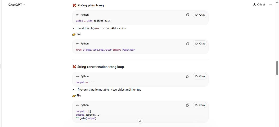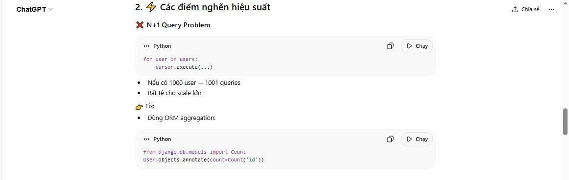 # Query raw SQL trong vòng lặp (N+1 query problem)