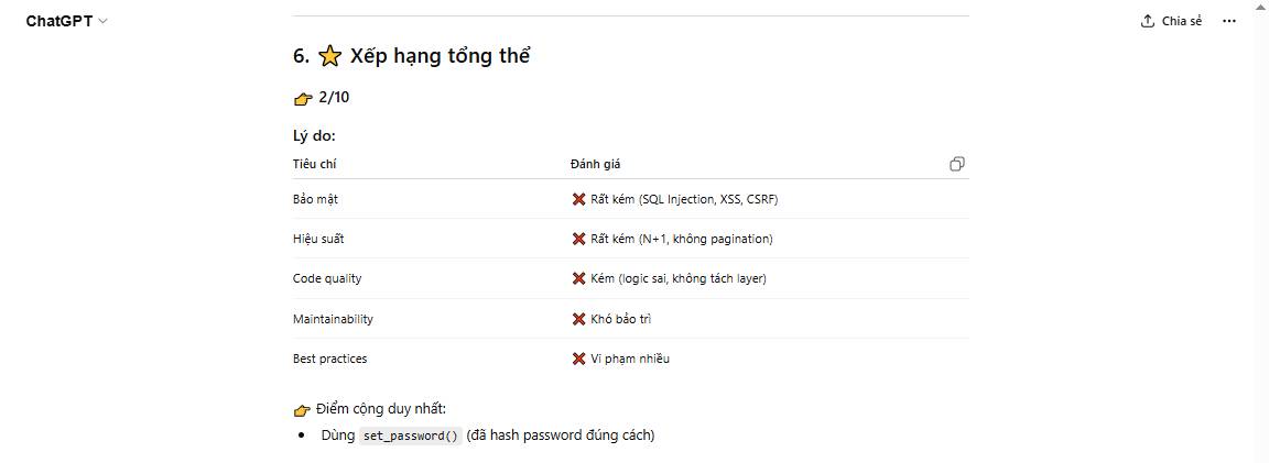 Prompt đánh giá code toàn diện