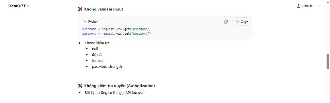# Không validate input