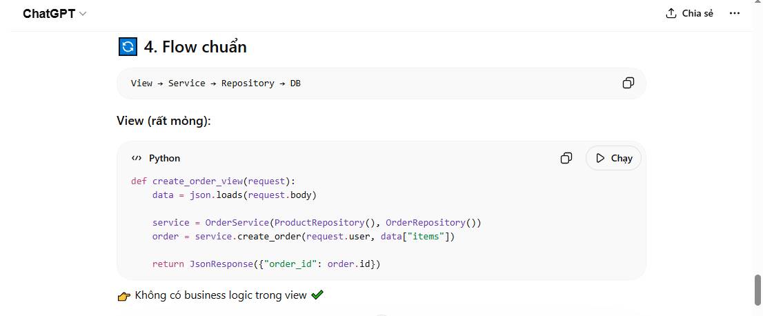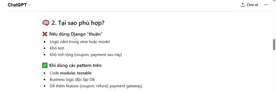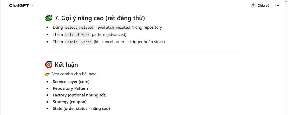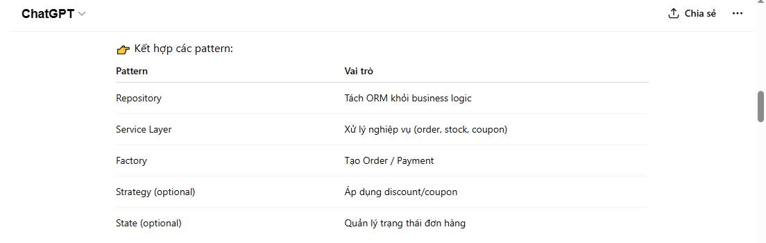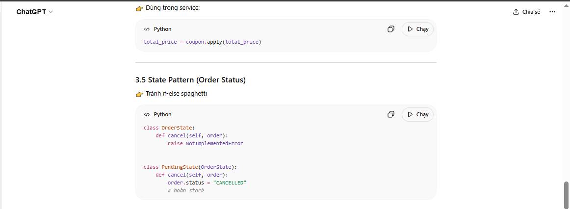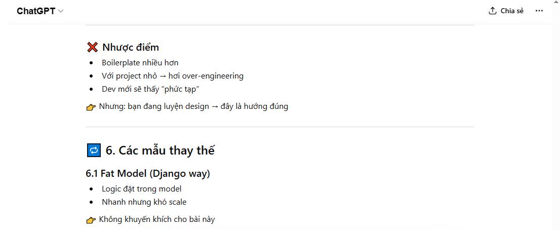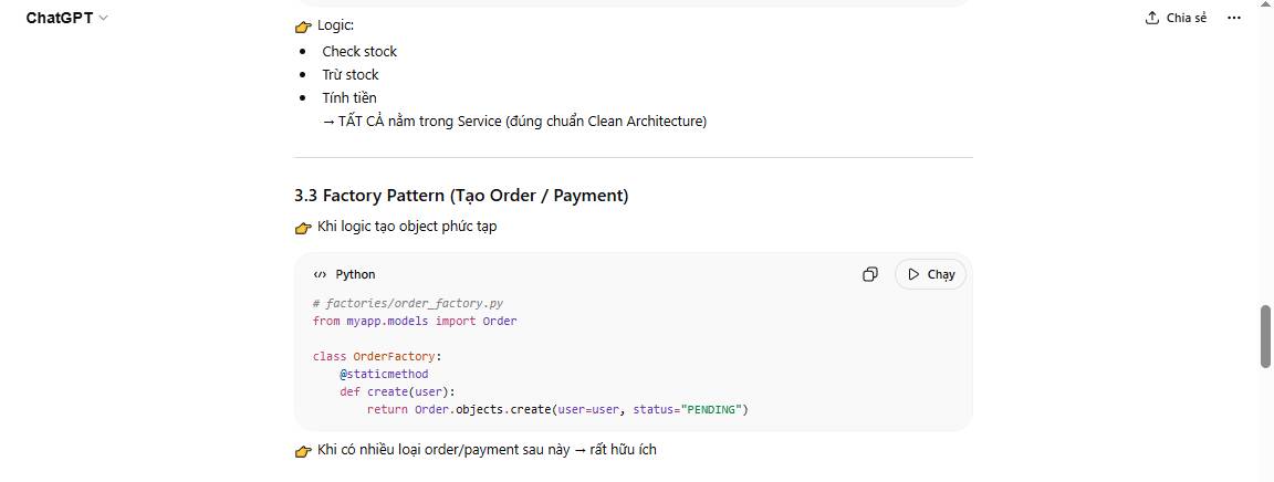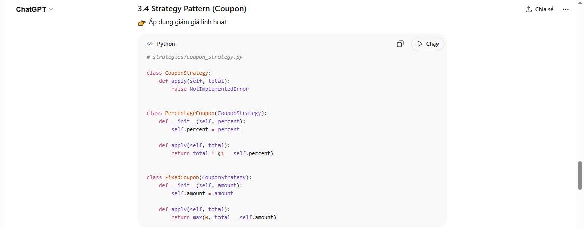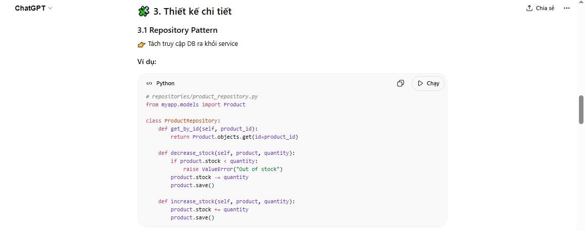 Song song với đó, sự phát triển của AI đã mở ra một cách tiếp cận mới: Sử dụng prompt để đề xuất và áp dụng các mẫu thiết kế phù hợp cho từng bài toán cụ thể. Thay vì phải tự mình phân tích toàn bộ cấu trúc hệ thống từ đầu, lập trình viên có thể tận dụng prompt được thiết kế tốt để nhanh chóng nhận được gợi ý về kiến trúc, pattern và cách tổ chức code hiệu quả.