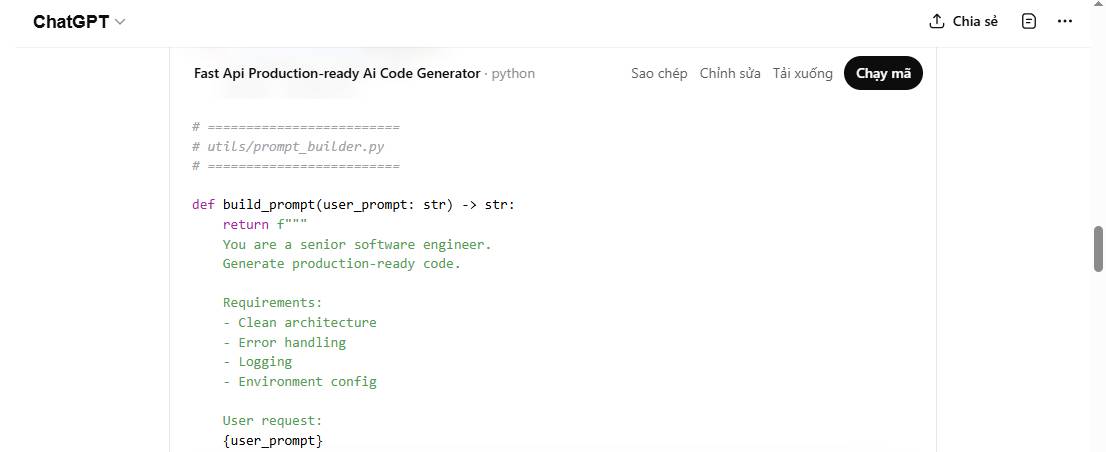 Prompt tạo code mẫu sẵn sàng cho sản xuất