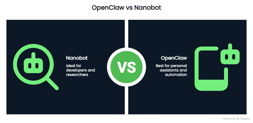 Nếu bạn muốn sức mạnh nhưng không ngại sự phức tạp, hãy chọn OpenClaw. Nếu bạn thích một giải pháp tối giản với mã nguồn dễ kiểm tra, thì Nanobot là lựa chọn phù hợp.