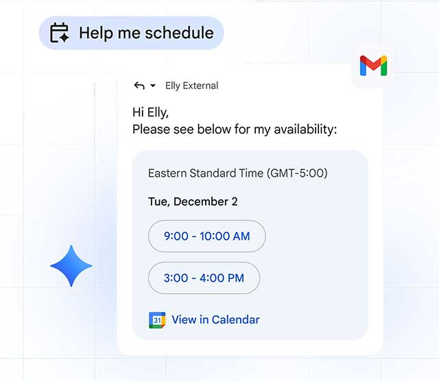Ở giai đoạn phối hợp, Gemini giúp đơn giản hóa nhiều thao tác quen thuộc. Trong Gmail, người dùng có thể lên lịch họp ngay trong email mà không cần chuyển qua lại giữa các công cụ.