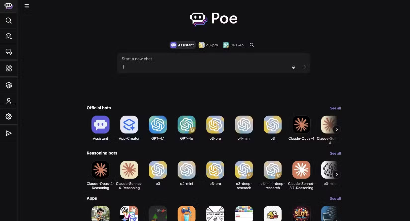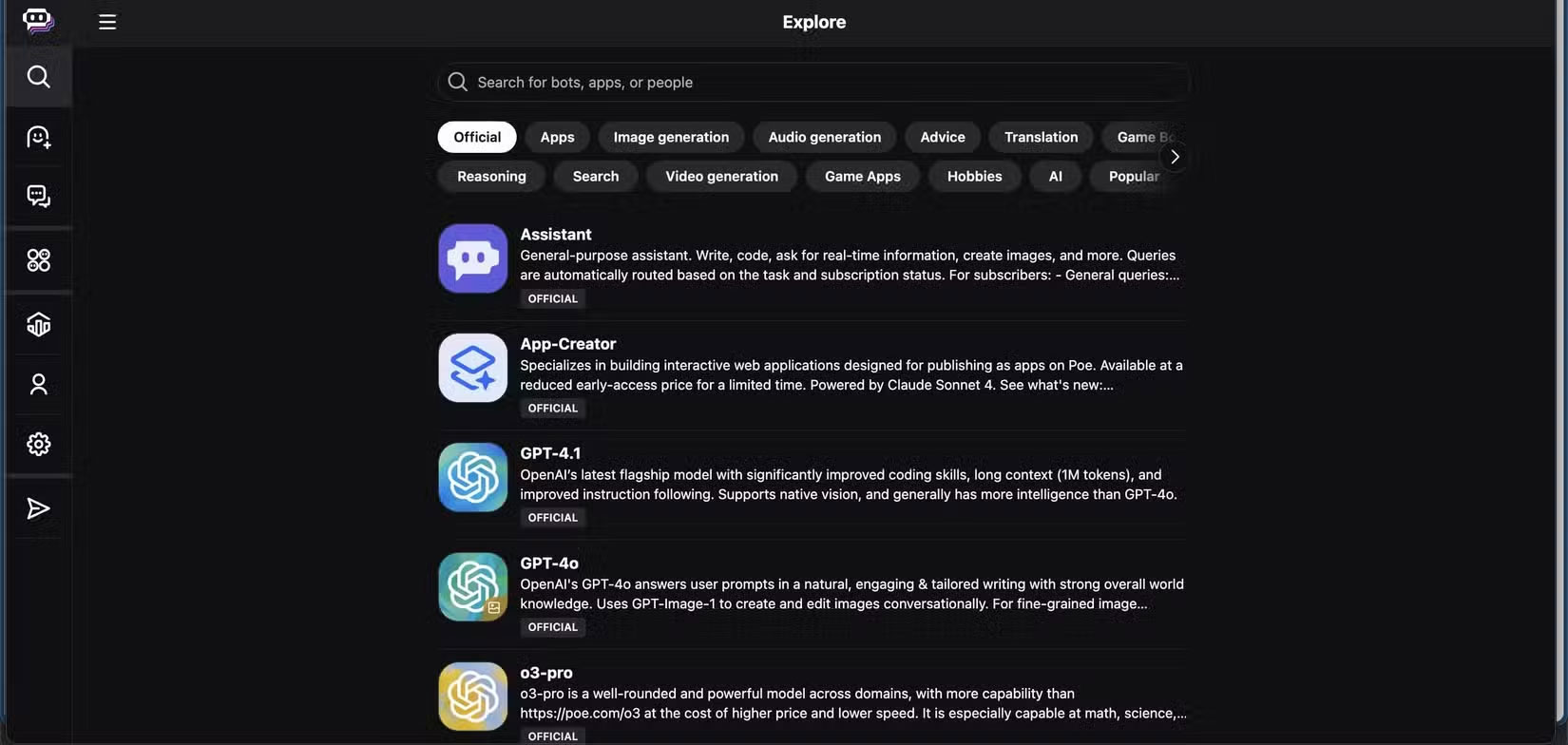 Poe cũng bao gồm một số mô hình ít được biết đến nhưng mạnh mẽ. Có Assistant (mô hình nội bộ của Poe), nhiều phiên bản được tinh chỉnh tối ưu hóa cho các tác vụ cụ thể, và thậm chí cả các bot do cộng đồng tạo ra chuyên về những lĩnh vực ngách. Sự đa dạng này có nghĩa là bạn không bị giới hạn bởi các tùy chọn phổ biến mà mọi người khác đang sử dụng.