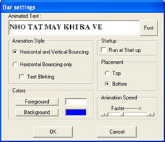 - Khung Animation Style: Chọn Horizontal and Vertical Bouncing cho dòng chữ đi ngang và lên/xuống (có thể mở rộng chiều cao của thanh chữ) hay Horizontal Bouncing only để dòng chữ chỉ chuyển động theo chiều ngang, hộp kiểm Text Blinking làm chữ nhấp nháy.