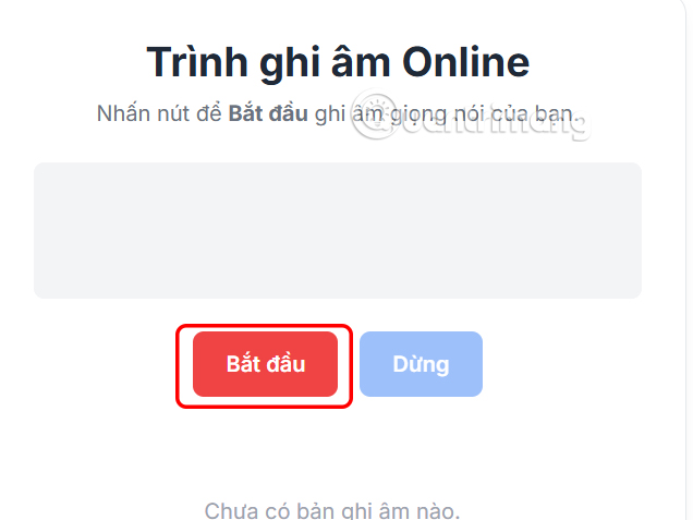 Tại công cụ bên trên bạn nhấn vào nút Bắt đầu để tiến hành ghi âm.