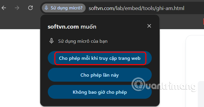 Sau đó bạn được yêu cầu đồng ý để trình duyệt sử dụng micro.