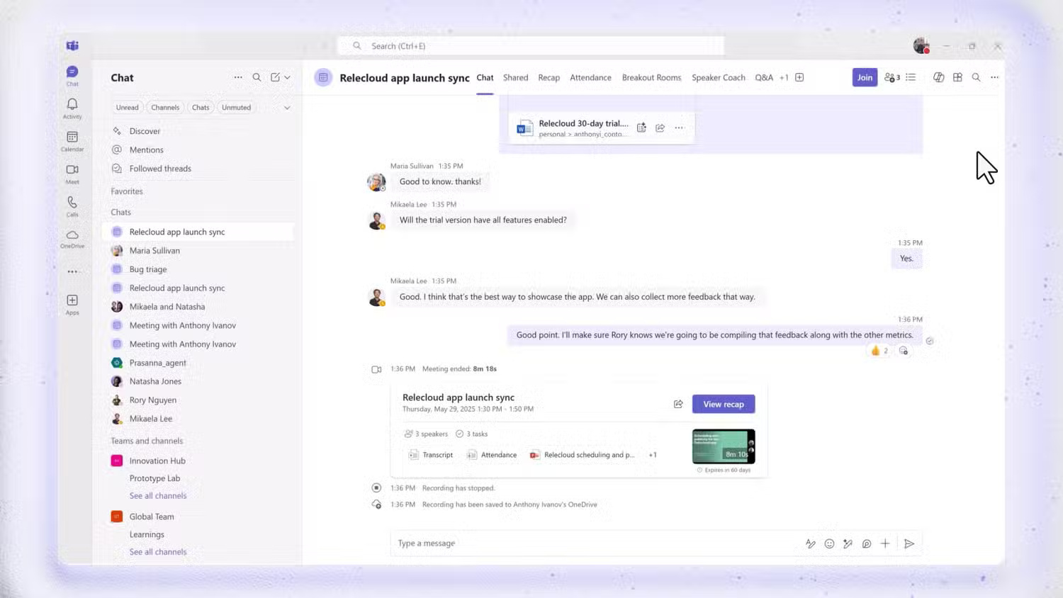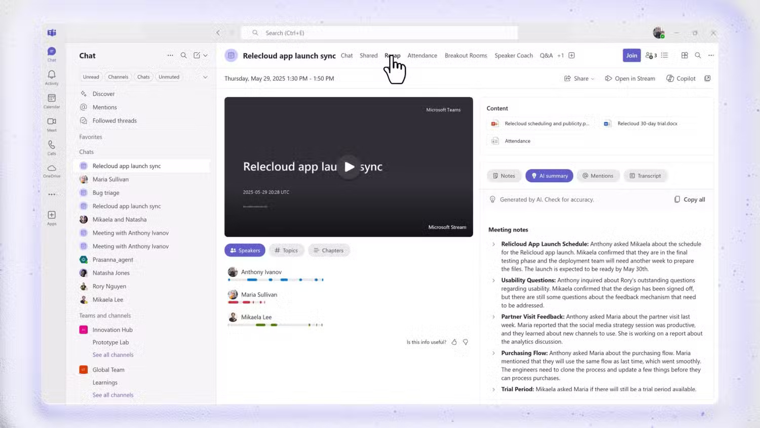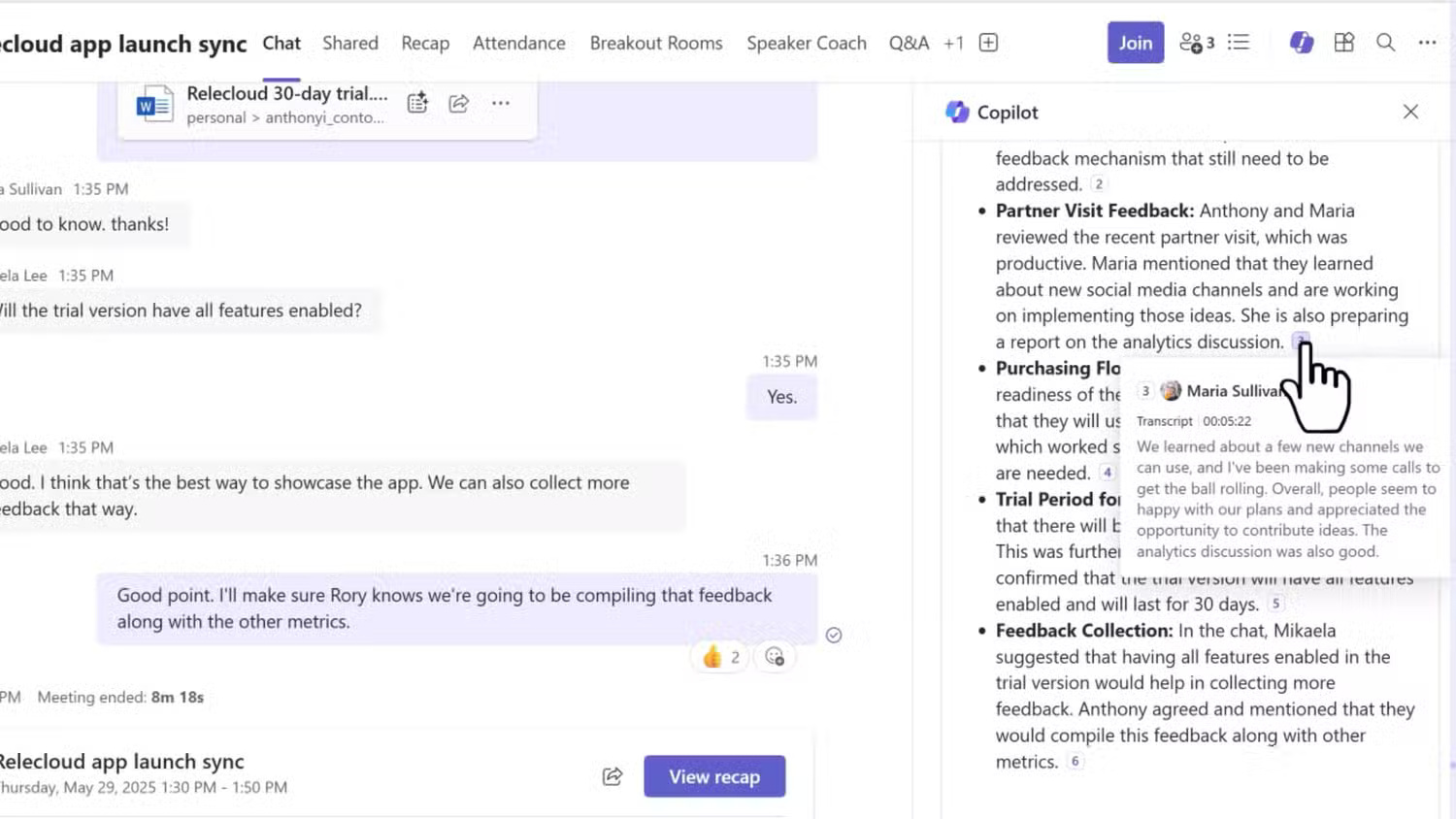 Chỉ cần hỏi: “Tôi đã bỏ lỡ điều gì cho đến nay?”, nó sẽ lặng lẽ đọc bản ghi trực tiếp của cuộc họp và tóm tắt lại dưới dạng danh sách gạch đầu dòng. Bạn thậm chí có thể hỏi xem tên của mình có được nhắc đến trong 15 phút đã bỏ lỡ hay không.