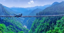Thót tim xem ô tô tải đi qua cầu treo bằng dây xích bắc qua hẻm núi sâu 300m