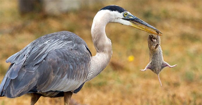 Trong video, một con chim diệc khổng lồ đã sử dụng chiếc mỏ dài, to, cứng của mình bắt sống được một con sóc chuột tại khu vực bãi biển Moonshine thuộc Cambria, California.